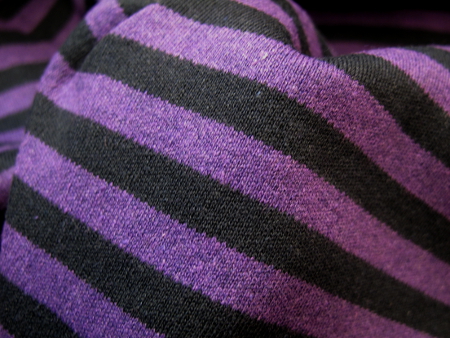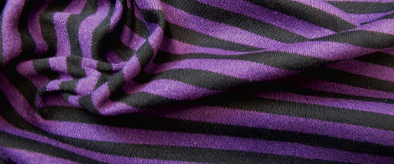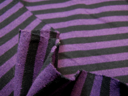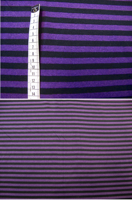100% Baumwolle; Romanit-Jersey; Farbe lila und schwarz quer gestreift; stabile Ware mit zwei gleichen Seiten; Rest Breite 160 cm x 1m; geeignet für Kleider, Röcke, Oberteile, Hoodies;