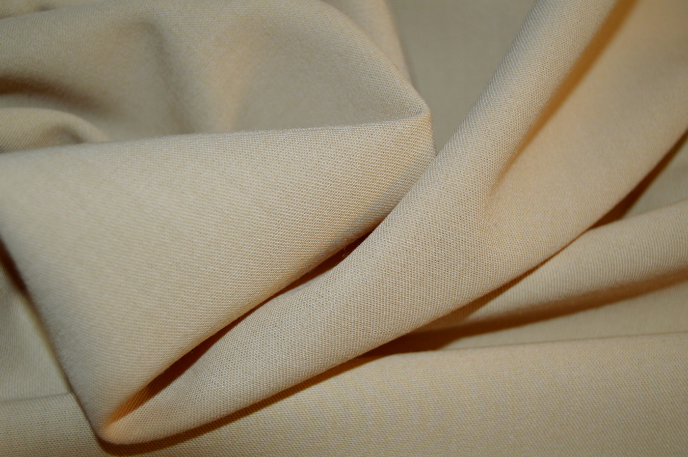 55% Polyester/45% Schurwolle; Farbe mittelbeige; Breite 156 cm